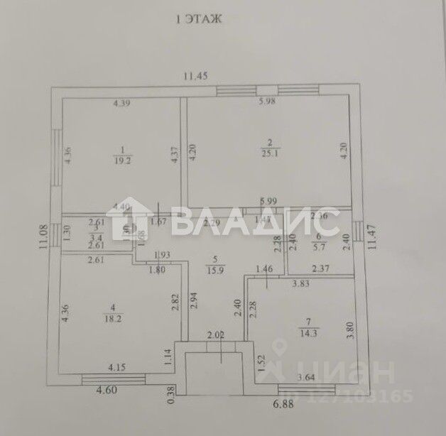 Три спальни (14,3 + 18,2 + 19,2 кв. м) и просторная кухня площадью 25,1 кв. м предоставляют отличные возможности для обустройства.