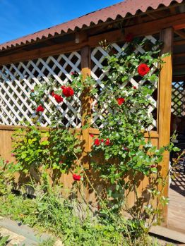Постройки на участке: беседка, душ, курятник, уличный туалет, площадка под бассейн. Есть скважина.