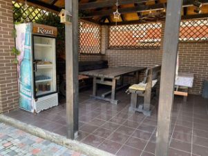 Беседка с мангальной зоной и мебелью из натурального дерева