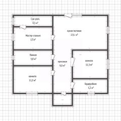 Просторный дом площадью 96,6 кв. м расположен на участке 4 сотки в СНТ "Автомобилист". Фасад здания протяженностью 18 метров обеспечивает удобную планировку с рациональным зонированием пространства. Главная особенность дома — изолированная мастер-спальня для родителей, что создает комфортные условия для проживания нескольких поколений. Входная группа включает гардеробную, что повышает функциональность жилого пространства. Кухня-гостиная объединена, образуя просторную зону для семейного отдыха и приема гостей. Санузел продуман до мелочей: предусмотрены выводы для полотенцесушителя, подсветки, а также коммуникации для подключения стиральной и сушильной машин.