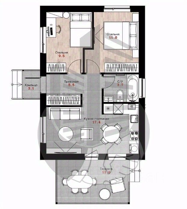 • 2 просторные спальни  личное пространство для каждого члена семьи.