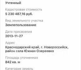 Кадастровый номер: 23:47:0117052:1274. Уточненная площадь 842 кв.м