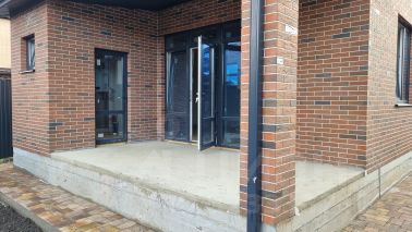 Предчистовая отделка: Участок огорожен забором металл профиль, по фасаду колонны. Ворота откатные, калитка. Въездная группа залита бетоном, дорожка к дому забетонирована, вокруг дома отмостка 0,8м., будет уложена брусчатка. Внутри дома стены оштукатурены, отшпатлеваны под маяки, шпатлевка под обои (два слоя). Внутри сделана разводка электросети, системы водоснабжения и отопления. В систему отопления входит теплый пол в коридоре, санузле и в кухне-столовой, в комнатах устанавливаются радиаторы, ставим газовый котел. Дом будет подключен к газовым сетям.Скважина до второго водоносного слоя ориентировочно 30м. Электричество 10кВт. Септик 3 кольца (бетон) объем 10куб