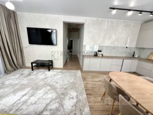 Частично остаётся мебель, на кухне — посудомойка, варочная панель и вытяжка.