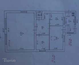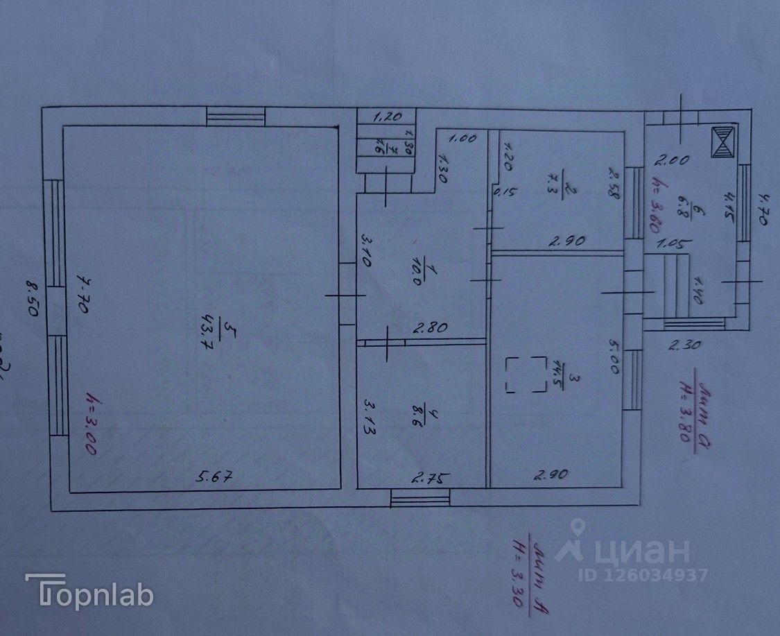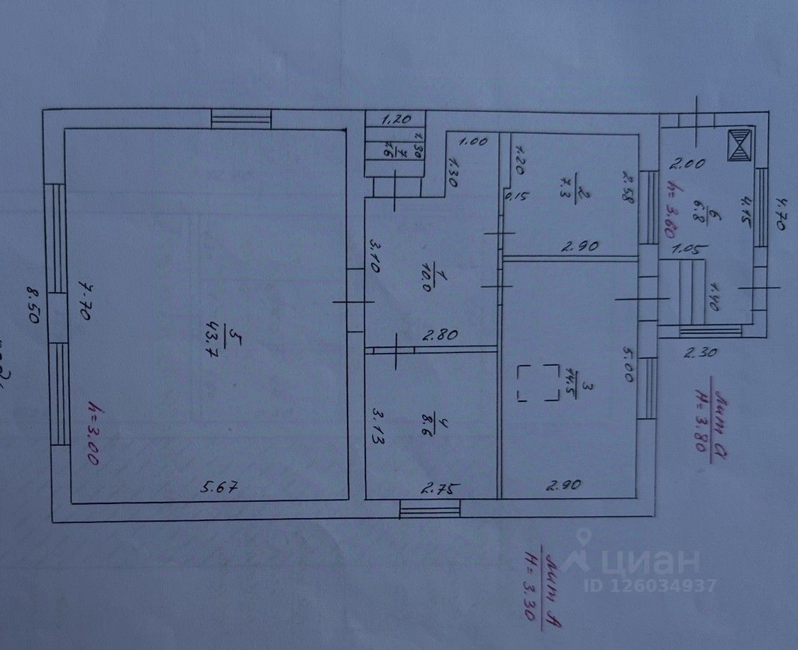 В доме жилые двa этaжа. Четыре комнаты, из них большой зал 43,7м.