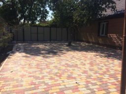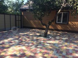 Ухоженный двор правильной формы: Аккуратно выложенный плиткой, он легко моется и выглядит безупречно.