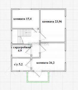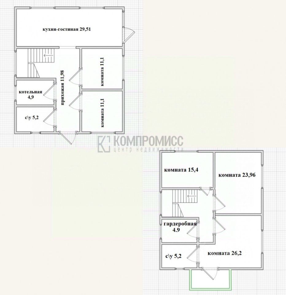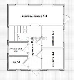 На первом этаже расположена просторная кухня-гостиная, гостевая спальня, кабинет, санузел и котельная.