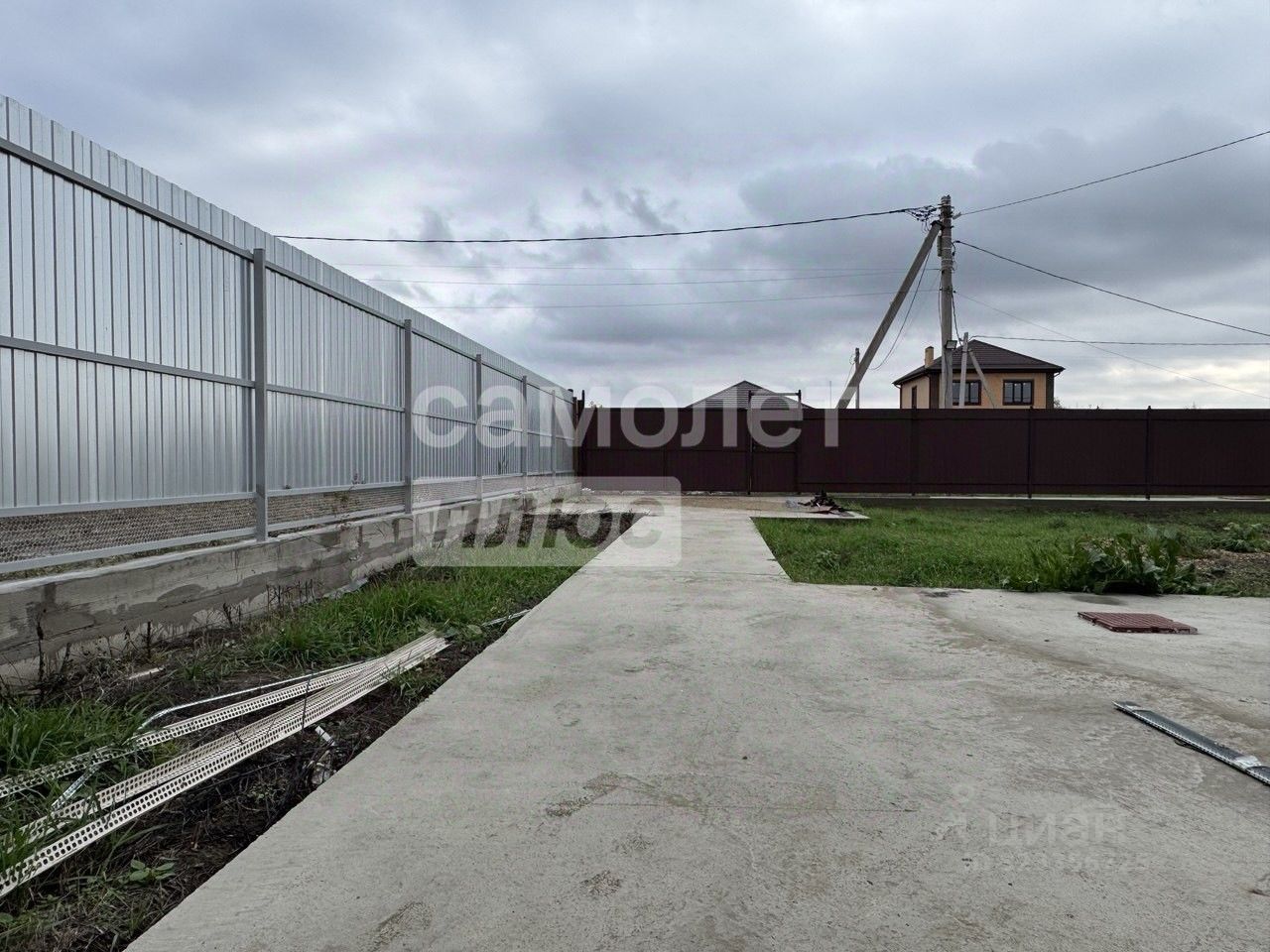 Двор забетонирован, двор огорожен забором, откатные ворота и калитка.