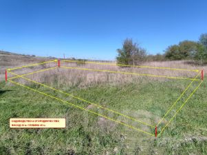 Имеет правильную прямоугольную форму ФАСАД 20 метров , ГЛУБИНА 40 метров. Есть небольшой уклон.