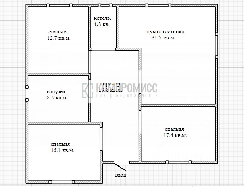 Общая площадь дома - 118 кв.м. В доме три изолированные комнаты, просторный санузел (8.5 кв.м.), котельная, холл-коридор и кухня-гостиная.