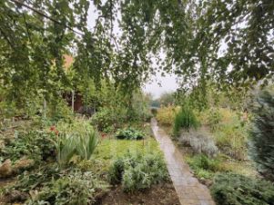 Уютный сад с плодовыми деревьями-черешня, вишня, яблоки, груши, слива, обрикосы, персик, виноград, кизил, малина.