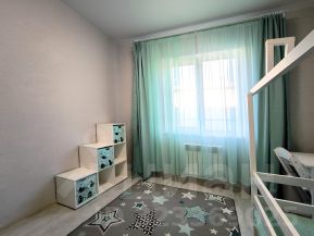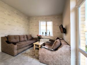 В доме 3 уютные спальни, просторная кухня-гостиная 22 кв.м, большие санузел и коридор. На окнах установлены тройные стеклопакеты, замок с защитой от детей на задней двери.