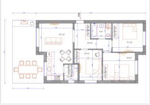 Прихожая,кладовая, кухня - гостиная, просторная терраса, сан.узел, три спальные комнаты.