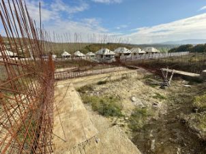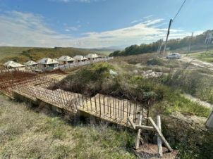 Участок каскадный, по периметру сделаны подпорные стены. На участке есть скважина, заведен свет!