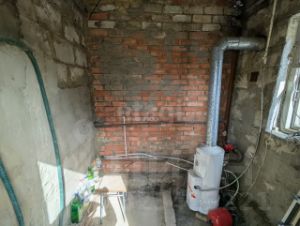 Дом саманного типа, облицован кирпичом. В качестве кровли шифер. В доме 2 входа, 4 комнаты (2 смежные и 2 изолированные), 2 кухни и санузел