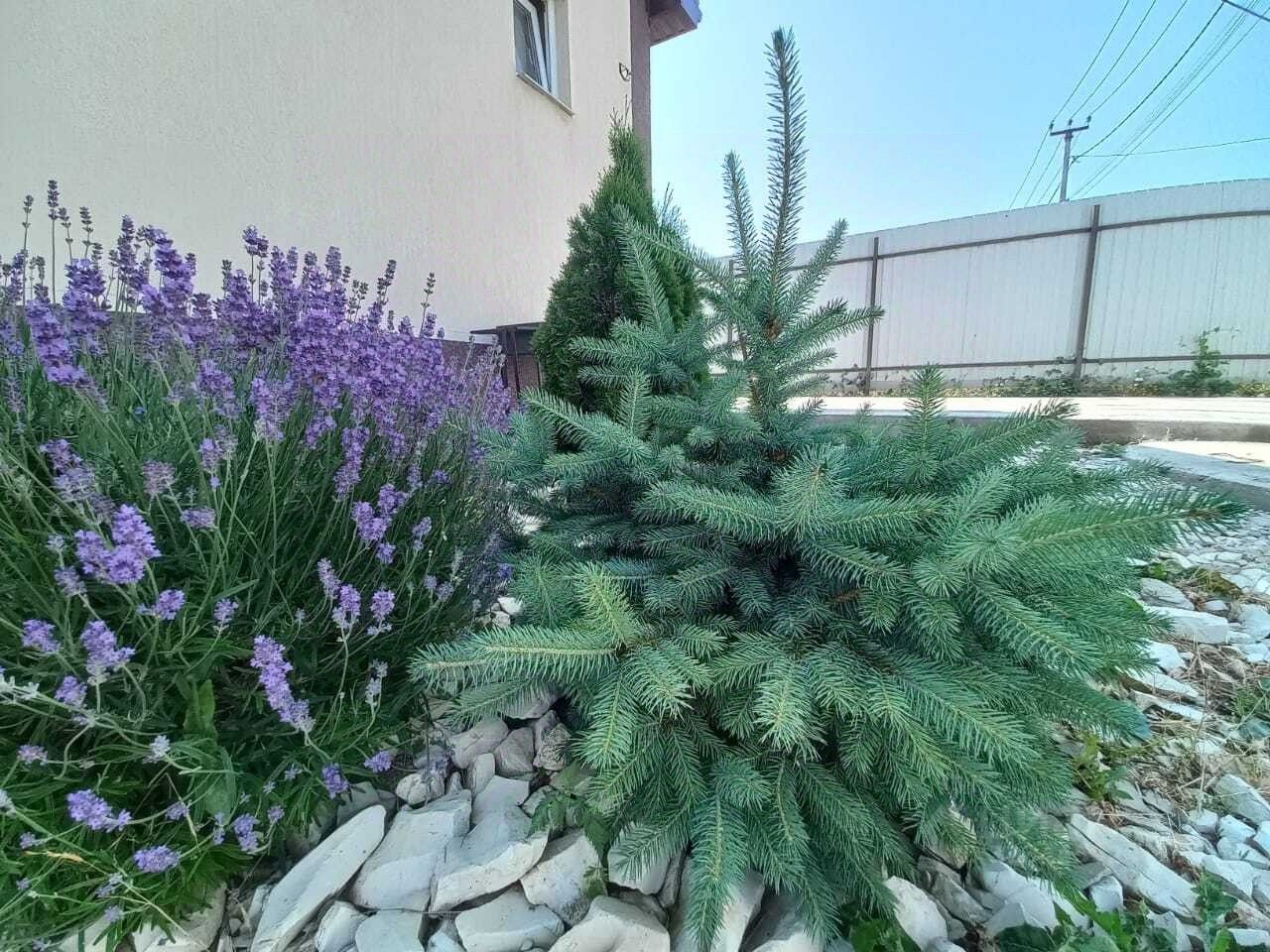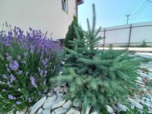 На участке растут: розы, голубая ель, можжевельники, сосна, пихта, лаванда. Плодовые: черешня, груша, яблони, абрикос, персик, чернослив, инжир, гранат.
