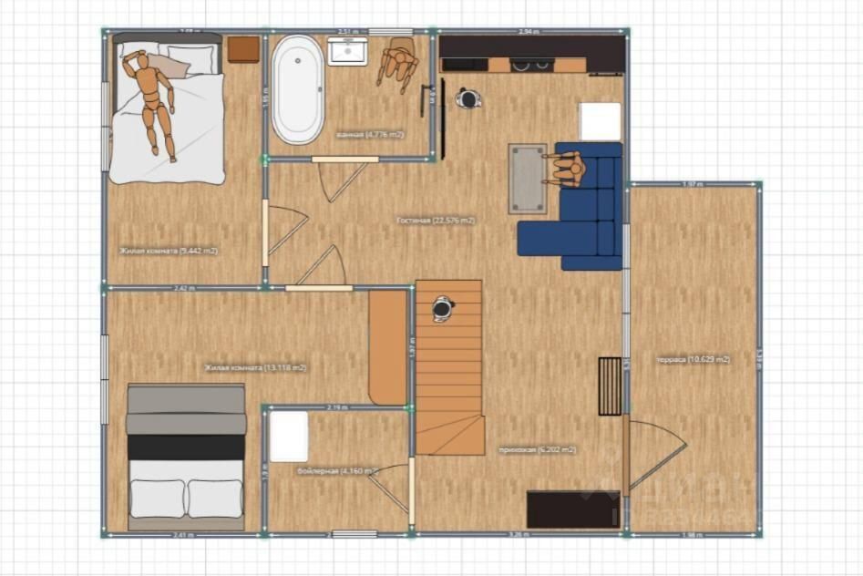 2 этаж : спальня 17 кв.м ,с/у 5,2 кв.м, холл под зимний сад либо можно использовать как комнату 33 кв.м , балкон 7 кв.м ( перила входят в стоимость) лестница на второй этаж тоже входит в стоимость. Все доделки в работе.