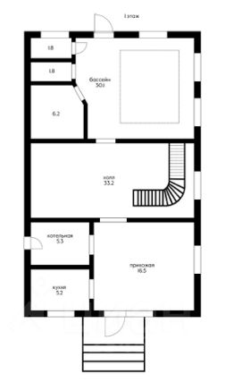 Дом кирпичный, двухэтажный. На первом этаже расположены: холл, гостиная, бассейн, сауна, кухня, на втором бильярдный зал, три спальни и санузел.