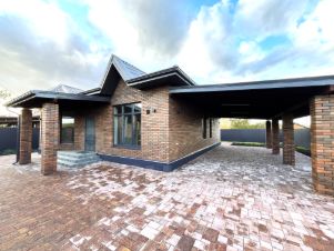 Одноэтажный коттедж возведен в современном архитектурном стиле, по индивидуальному проекту.