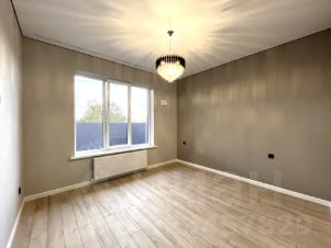На полу в комнатах — ламинат. натяжные потолки с стильными люстрами, установлены межкомнатные двери, радиаторы отопления, двухконтурный котел.