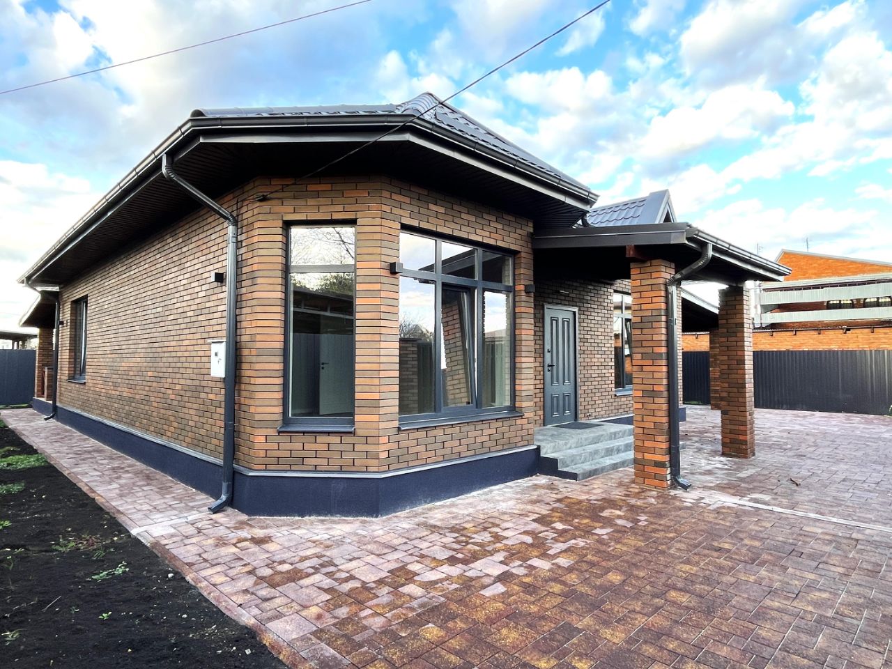 Новый большой стильный кирпичный дом с отличным ремонтом в станице Елизаветинской.