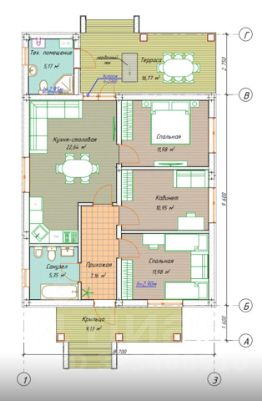 В доме: кухня - гостинная, 3 спальни, 2 санузла, каждый санузел с окном. Большая крытая терраса. Потолки 3 метра.