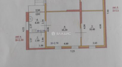 Общая площадь составляет 34 кв.м, жилая 26,6, кухня 4,6 кв.м. Состоит из двух жилых комнат, одной проходной и одной изолированной, кухни и совмещенного санузла. Из одной из комнат есть спуск в сухой глубокий погреб.
