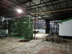 Благоустроенная территория отличается практичностью: двор вымощен тротуарной плиткой и оснащен масштабным навесом площадью около 150 кв.м с системой освещения.