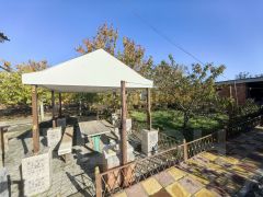 Двор в плитке, мангальная зона, парковочное место на две машины, навес, летний душ, туалет, хоз.постройки.
