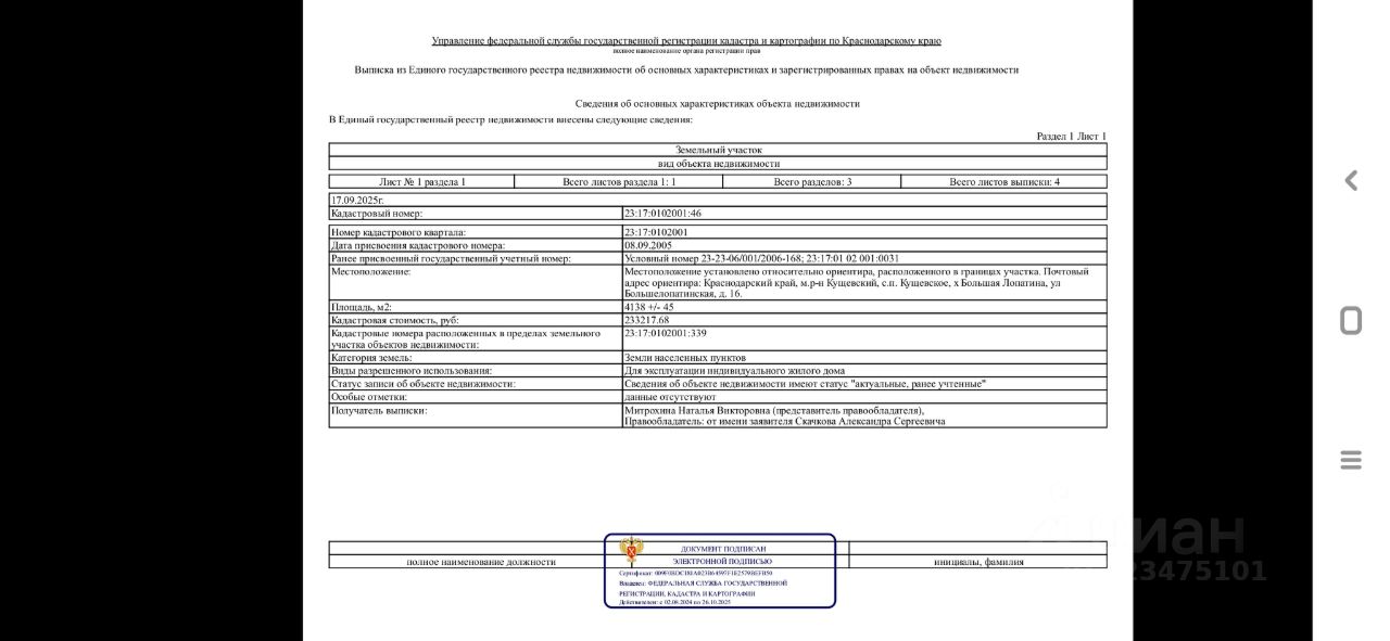 Статус участка