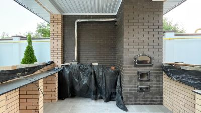 Благоустроенная территория участка зона отдыха, барбекю, бассейн,