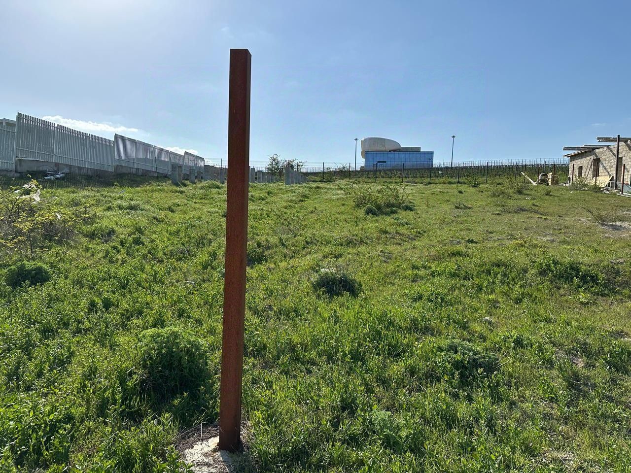 По левой и тыльной стороне участка забор из металлопрофиля. По фронтальной стороне и правой возведены бетонные столбы.