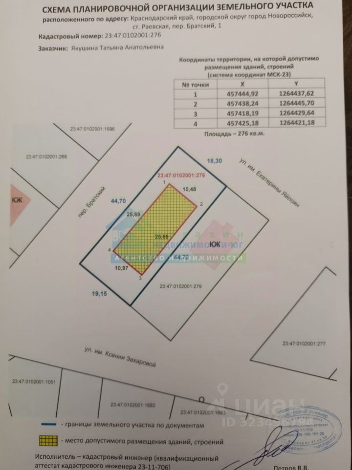 В продаже участок в станице Раевской. Участок ровный, правильной формы, без уклонов, площадь 837 кв. м., Фасад 44м. и 20м. Свет на участке. Участок находится на землях населенных пунктов, для личного подсобного хозяйства (тоже самое что и ИЖС почти) Все документы готовы к продаже. Имеется свежее разрешение на строительство, заключение археологии, участок без обременений. Рядом много участков где строить нельзя из-за археологии. Полная сумма в договоре, любая форма оплаты. Пятно застройки на фото. 23:47:0102001:276
