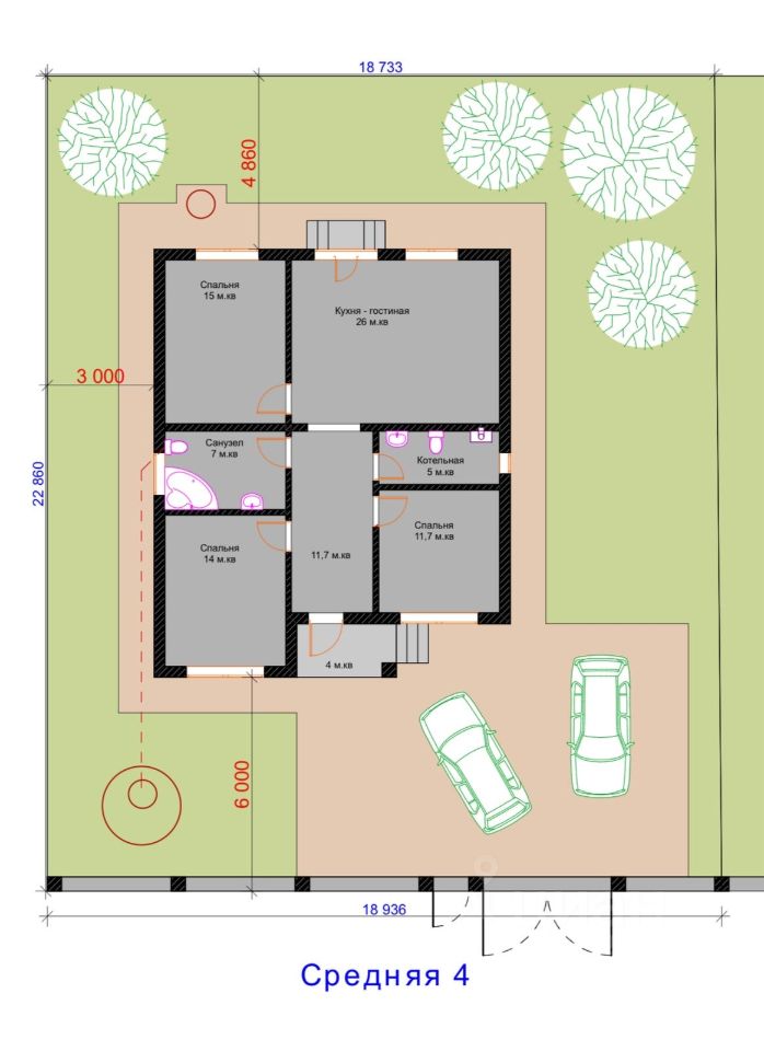 Хорошая планировка: кухня-гостиная с выходом на террасу, 3 комнаты, с/у, котельная и прихожая.
