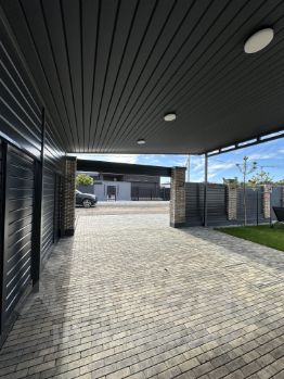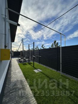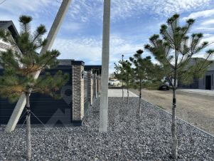 Снаружи вокруг дома высажены 17 крымских сосен ( 7-8 лет ) , так же дом оснащен внешней подсветкой более 30 светильников вечером очень красиво. Под навесом спокойно становятся 2 машины .
