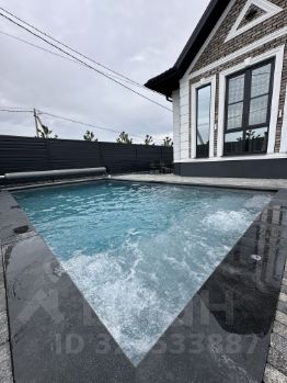 Бассейн 7.5х4 м полноценный монолитный каркас, с самой дорогой пленкой что была, как и аттракционами а это гидромассаж и противоток ( позволяет плыть на месте ) и конечно же подогрев. Зимой 38 держит спокойно . ( удовольствие 5000 р в месяц по газу)Борта выполнены в уровень с плиткой из итальянского не скользкого керамогранита. Так же при входе есть детская зона где мелко.