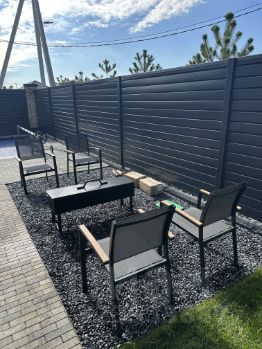 Зона мангала вынесена на угол дома где нет соседей и оснащена подводом воды, так что руки и посуду можно мыть прям на мраморную крошку .
