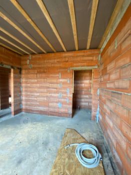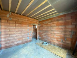 В доме выполнена предчистовая отделка:разводка по электричеству, стены оштукатуренные, механизированная стяжка пола, в комнатах установлены радиаторы отопления, мультифункциональный стеклопакет в остеклении ,установлен современный двух контурный котел отопления.