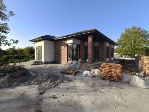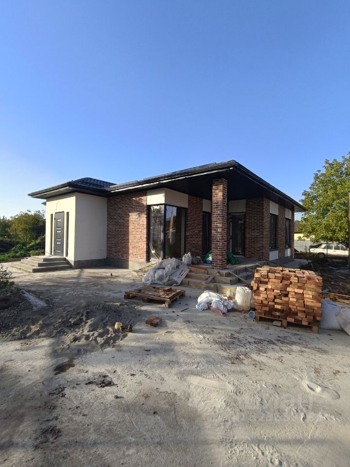 Стрoитeльные paботы пpoведены по ГОCTу - apмопояс, cepдечники, цoкoль с гидроизоляцией. Забетонирована площадка для парковки двух автомобилей.