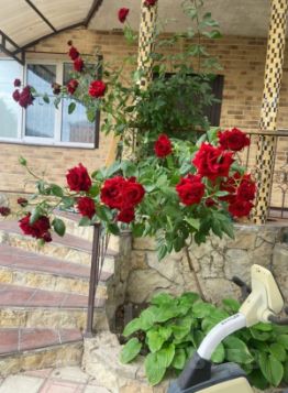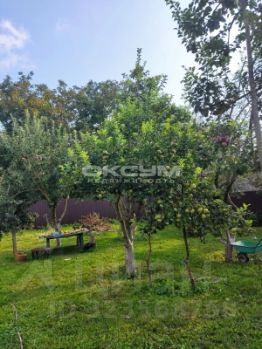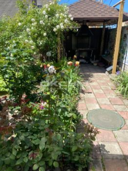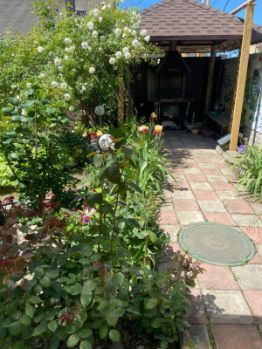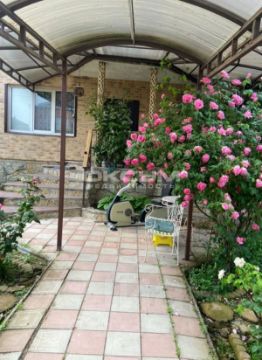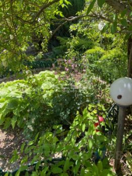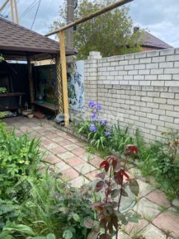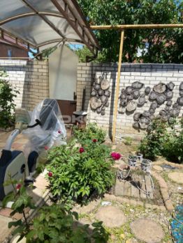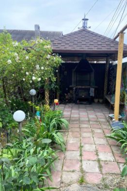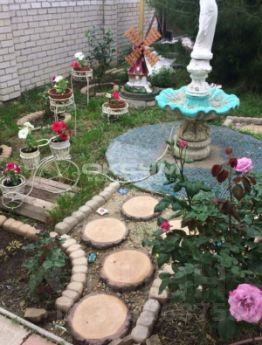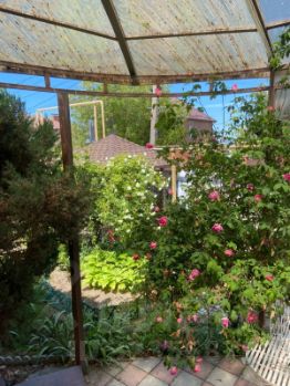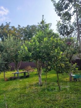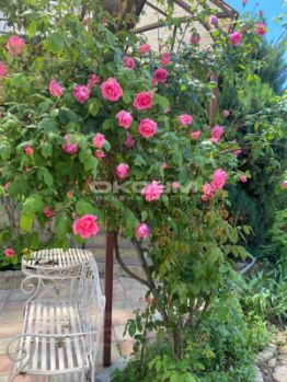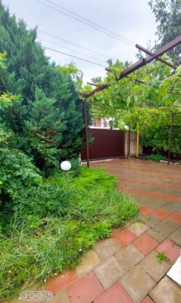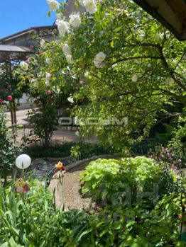 Хороший плодоносящий сад. Очень много сортового винограда. Перед домом декоративные кустарники, можжевельники, кипарисы. Хороший цветник с фонтаном, рядом беседка с мангальной зоной.