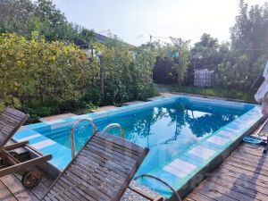 Во дворе банный комплекс (парная,душ,санузел,бассейн,комната отдыха). Рядом зона отдыха ( бассейн с зонтами и лежаками).