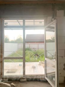 Дом выполнен из газоблока, который утеплен. Фасад - облицовочный кирпич. В гостиной, санузле, кухне - теплый пол. В комнатах - радиаторы.