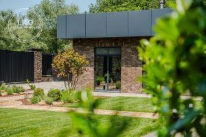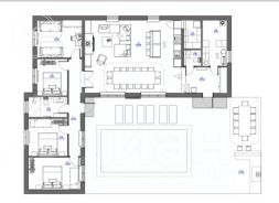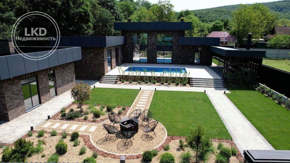 Современный дом с системой умный дом, все коммуникации (отопление, климат, электричество, уличное освещение, подогрев бассейна, автоматический полив газона, видеонаблюдение др.) подключается и регулируется с телефона.