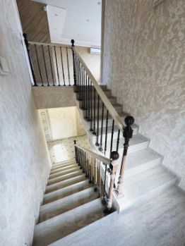 - Двухэтажный дом со всеми коммуникациями и удобной планировкой: 2 комнаты и просторная кухня-гостинная на первом этаже, два санузла, кабинет и три комнаты с выходом на балкон и просторную террасу на втором этаже