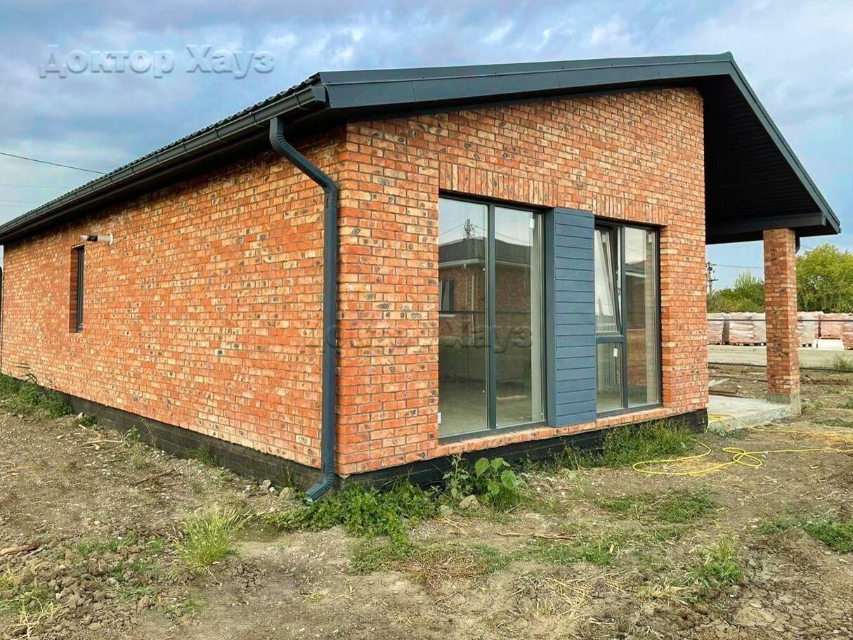 — Стены: блок + утеплитель + облицовочный кирпич.