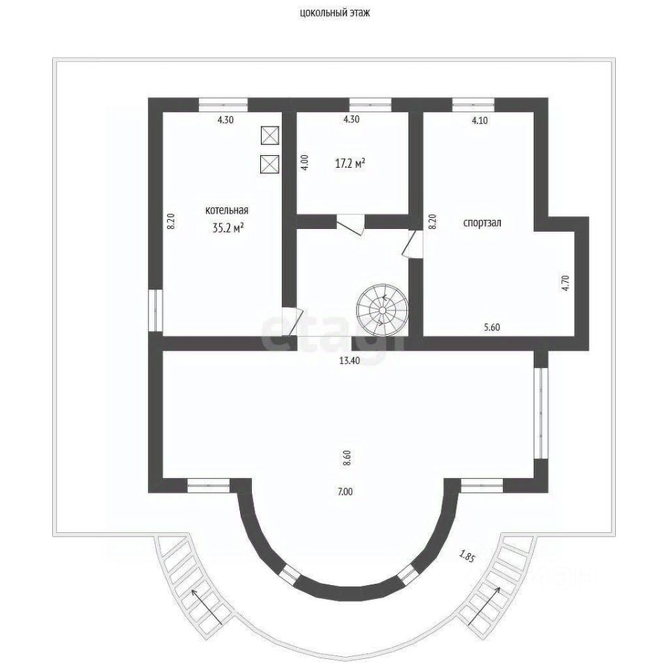Цокольный этаж: комнаты свободного назначения (складские, гардеробные, постирочная, котельная), санузел, профессиональный спортзал, домашний кинотеатр.