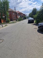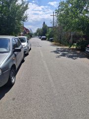 Широкая асфальтированная улица, есть зона отчуждения.