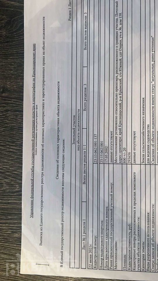 Продам земельный участок в Крымском районе в СДТ ,,Озерки" 8 соток.