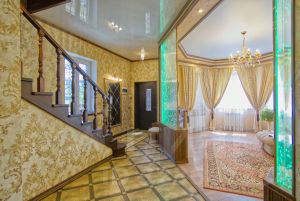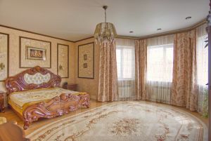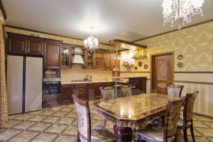 Ремонт сделан качественный, все материалы дорогие. Пол в кухне, прихожей и санузле первого этажа теплый, покрыт итальянской плиткой. В остальных комнатах - ламинат. Стены оклеены дорогими обоями. В санузлах установлена дорогая сантехника.