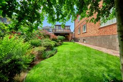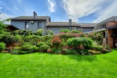На территории — авторский сад с взрослыми деревьями, декоративными растениями и цветами.